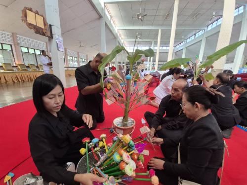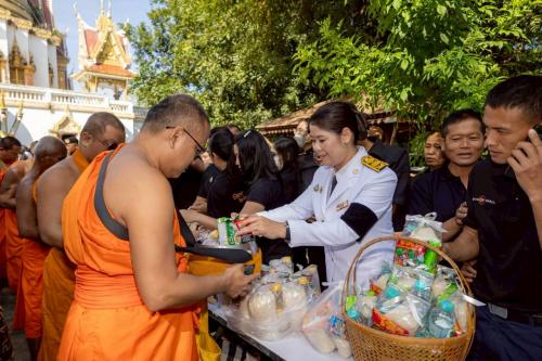 พิธีทำบุญตักบาตรข้าวสาร อาหารแห้ง เพื่อถวายเป็นราชกุศลสมเด็จพระนางเจ้าสิริกิติ์ พระบรมราชินีนาถ พระบรมราชชนนี พันปีหลวง (โครงการ 1 ครัวเรือน 1 อำเภอ เกื้อกูล กิจกรรม “อิ่มบุญ อิ่มใจ ปันน้ำใจให้ผู้ยากไร้”)