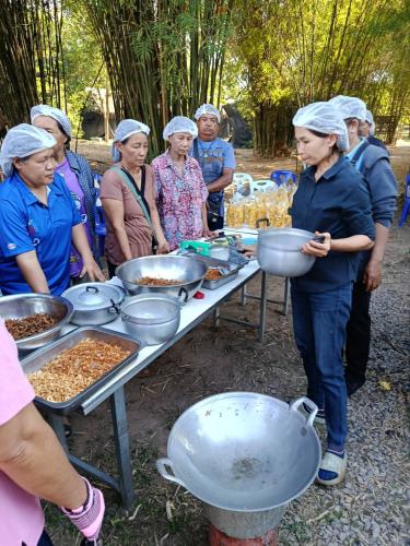 ฝึกปฏิบัติการสาธิตอาชีพ ได้แก่ น้ำพริกเห็ดกากหมู การทำขนุนทอด การทำกล้วยฉาบ